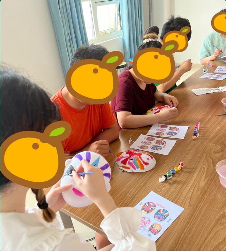 在了解了京劇基礎知識后,同伴們通過親手繪制京劇臉譜,進一步感受國粹。拿起畫筆的同伴們仿佛成為了小小戲曲藝術家,全神貫注的勾劃線條、填涂顏色。