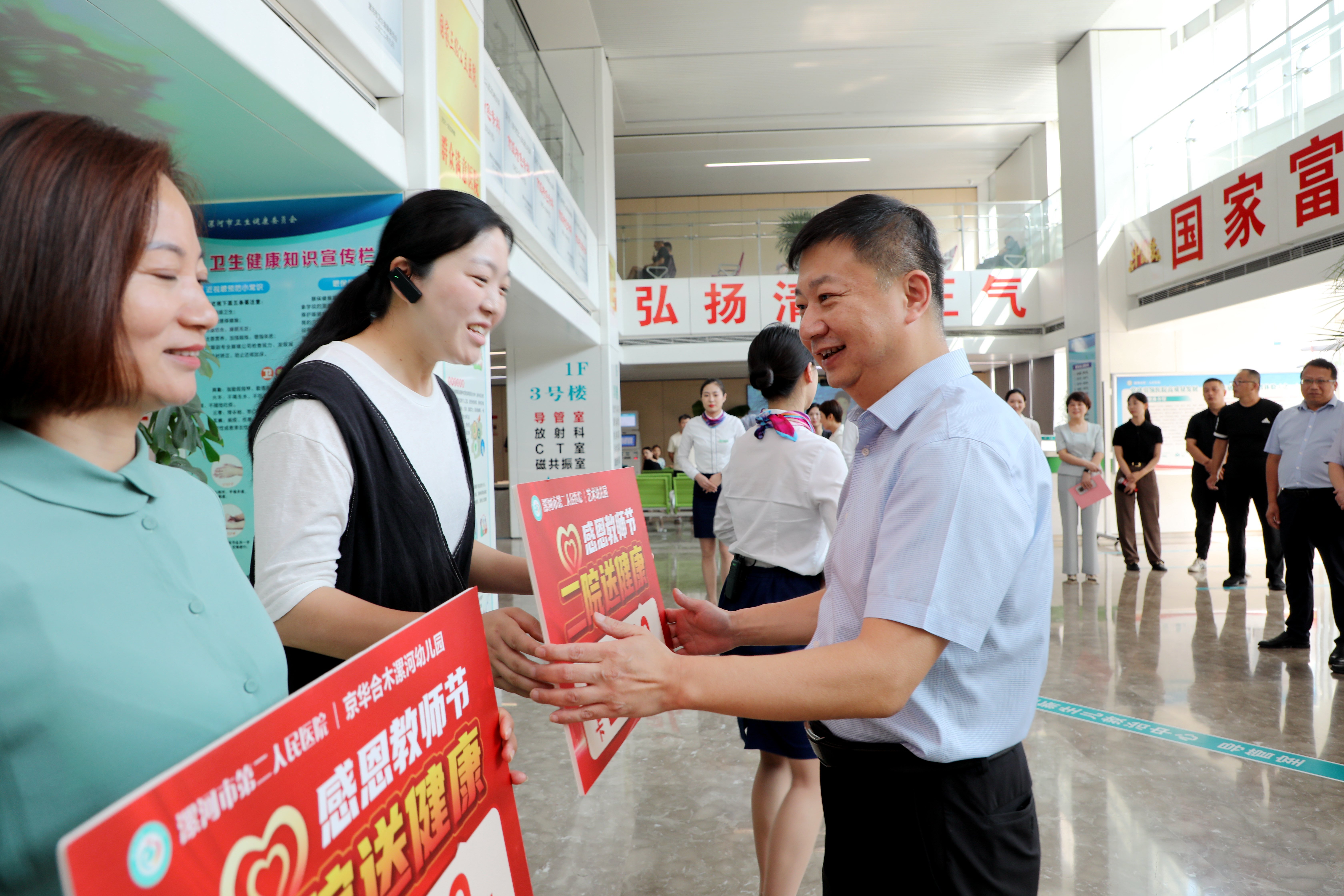 時值白露,金風送爽。在第39個教師節來臨之際,為致敬辛勤奉獻的廣大一線幼教園丁,9月8日上午,漯河市第二人民醫院隆重舉行全市健康協作幼兒園“致敬教師節 二院送健康”活動啟動儀式,醫院黨委書記魏松、院長王瑾攜班子成員、行管職能科長,及部分臨床、門診科室負責人參加活動。啟動儀式由紀委書記孟德陽主持。