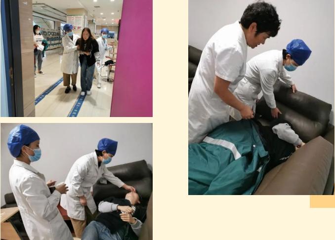 隨后崔愛麗和侯紅瑞一起把病人攙扶到檢驗科休息室,讓病人平躺在沙發(fā)上,隨時查看病人情況,并再次親切地安慰道:“你今天是來做什么檢查?現(xiàn)在感覺怎么樣了?”