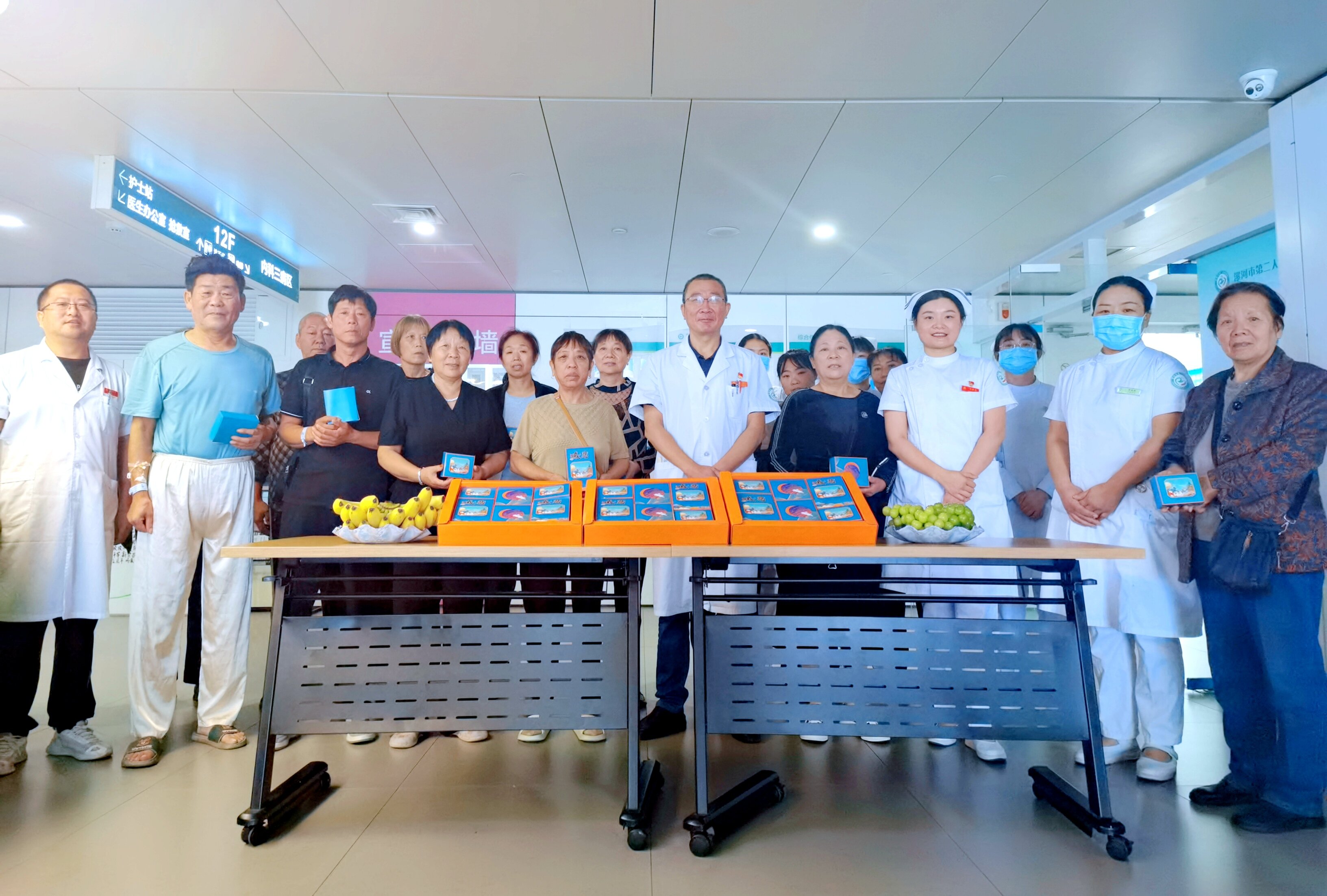 最后,神經內科主任呂杰民及護士長徐曉爽帶領科室醫護人員走進病房,將月餅、水果和節日的祝福送到每一位患者身邊,鼓勵住院患者要保持陽光心態,安心養病,積極配合治療,爭取早日康復。