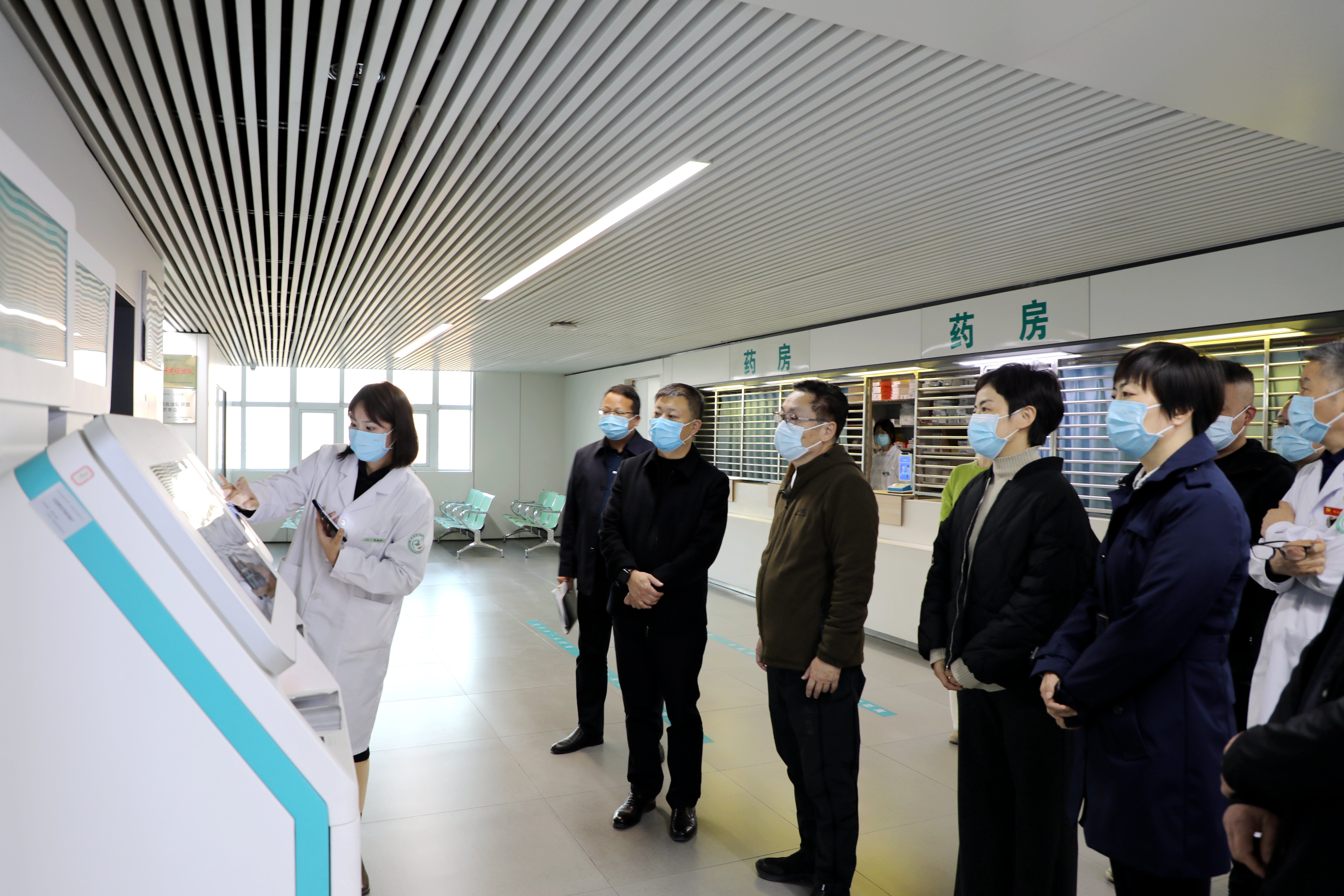 調研組一行先后來到一站式服務中心、一站式結算中心、中醫針灸科門診、五官科病區、影像科、藥房等地,了解會診轉診一站式服務、院內智能導航服務、門診患者醫技檢查24小時內完成服務、醫保電子憑證全場景應用服務、診間支付服務、病區結算服務、病案復印線上線下一體化服務等工作落實情況。調研過程中,專家組認真查看七大舉措實施進展,仔細詢問工作落實機制,現場體驗就醫流程,對市二院便民舉措完成情況表示充分肯定。