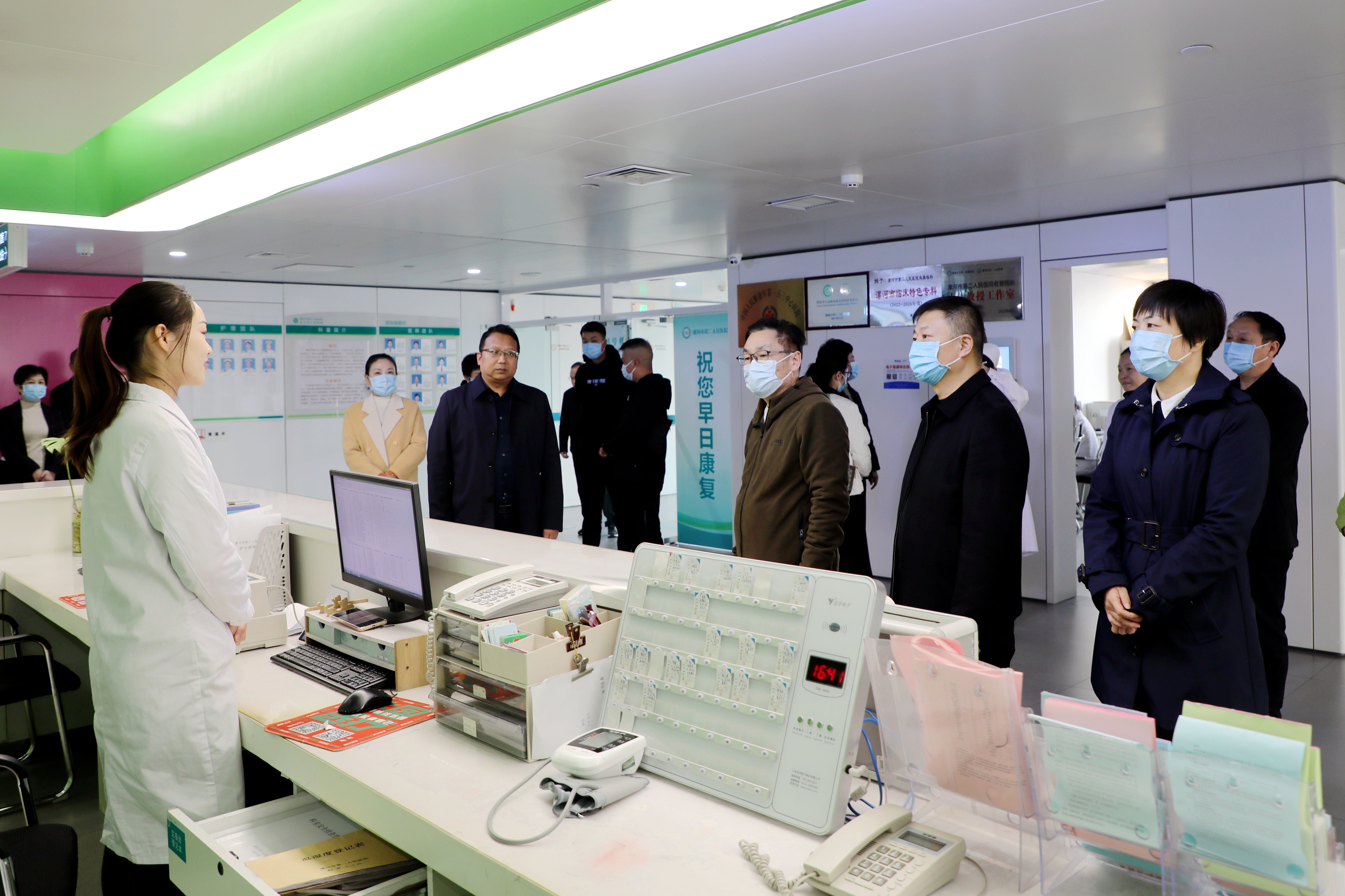 11月13日下午,市衛健委二級調研員趙明陽、市衛健委體改科科長李靜等一行蒞臨市二院對“便民就醫少跑腿”七大舉措推進情況進行調研、指導。市二院黨委書記魏松、院長王瑾及其他班子成員,相關職能科室負責人陪同。
