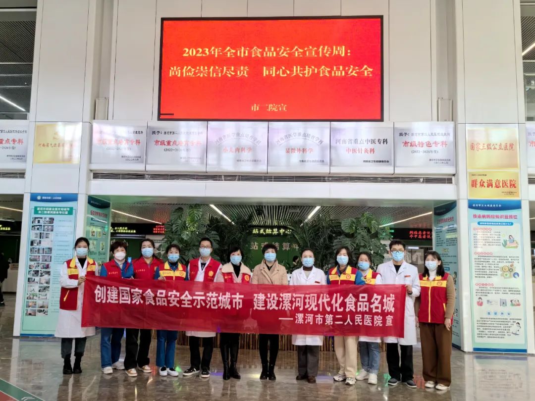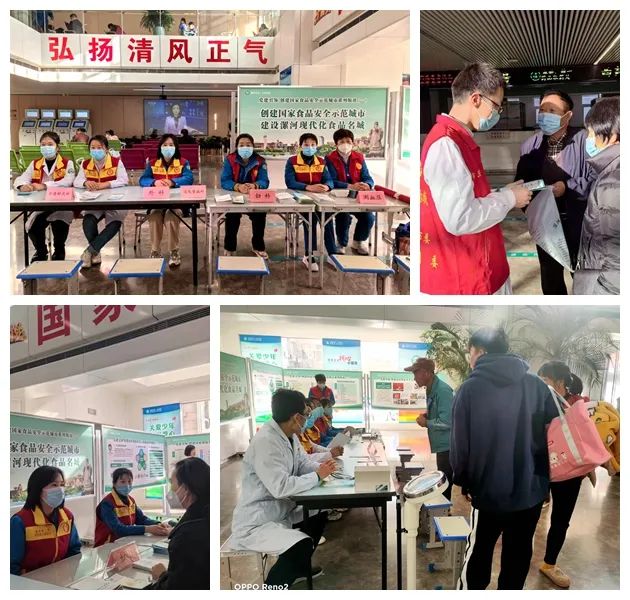 11月23日,市二院積極響應上級部門文件精神要求和通知,在門診部一樓大廳組織疾控科、消化腎病科、社區衛生服務中心等黨員志愿者和專家們開展了食品安全周義診宣傳活動。