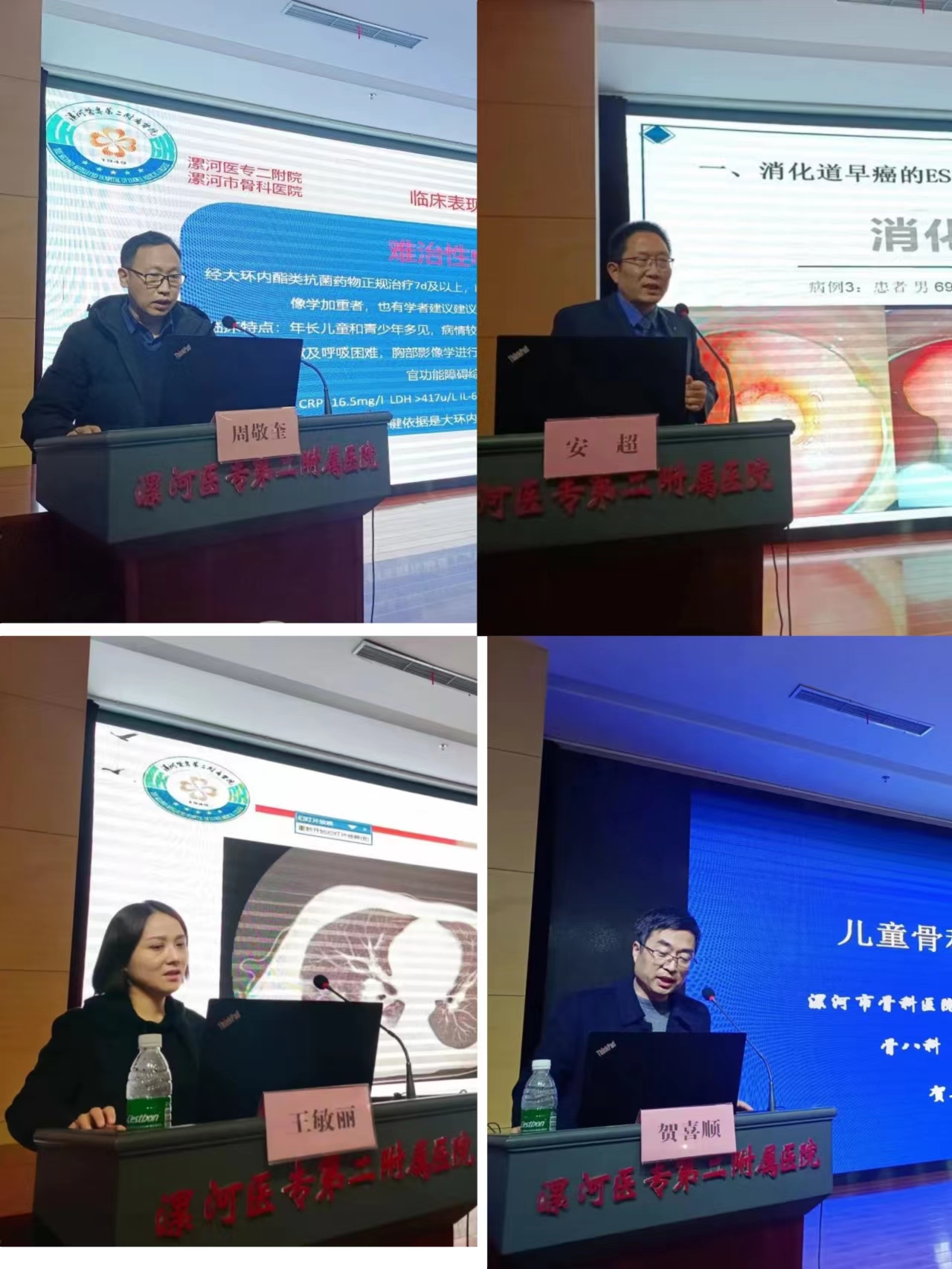 培訓會上,呼吸內科周敬奎主任、消化內科(內二科)安超主任、兒科王敏麗主任、小兒骨科(骨八科)賀喜順主任分別就《支原體肺炎的診治》《消化內科內鏡下前沿技術匯報》《兒童肺炎支原體肺炎診療指南解讀》《兒童常用霧化藥物介紹及誤區》《小兒骨科基本知識》進行精彩分享。
