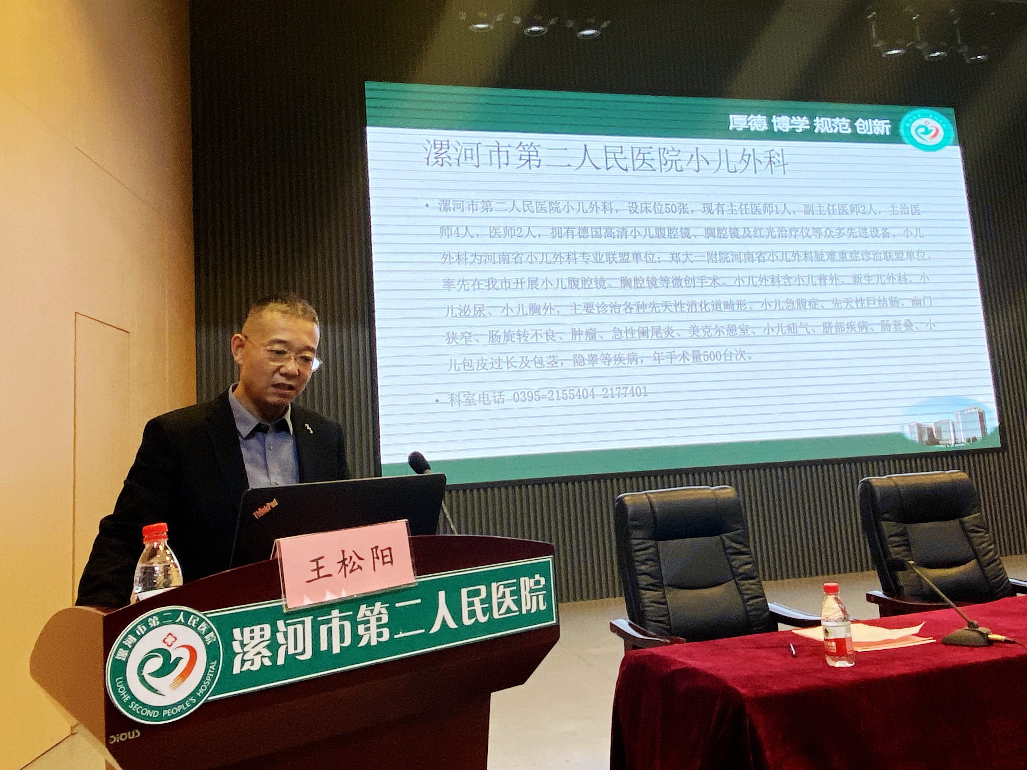 河南省醫(yī)學(xué)會小兒外科分會主任委員范應(yīng)中教授,鄭州大學(xué)第一附屬醫(yī)院張大教授,漯河市衛(wèi)健委二級調(diào)研員趙明陽,市醫(yī)學(xué)會秘書長花云,市第二人民醫(yī)院院長王瑾,市小兒外科專業(yè)主任委員、市二院小兒外科主任王松陽,市小兒外科專業(yè)分會委員會全體委員及各醫(yī)療單位專家、同仁近200人參加了此次會議。會議由漯河市醫(yī)學(xué)會副秘書長花云主持。