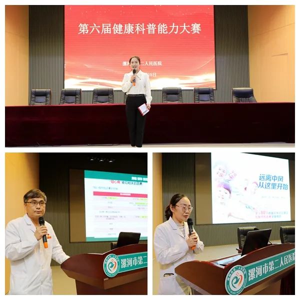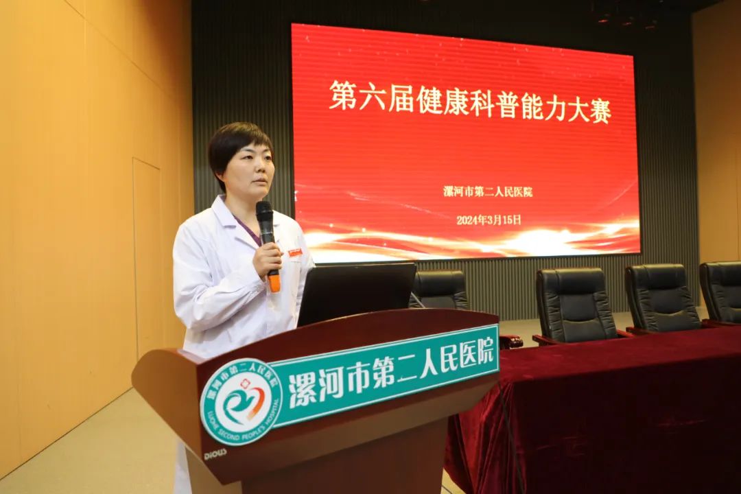 為進一步提升醫務工作者的健康科普能力,加強醫務工作者對健康工作方式的思考和拓展,營造全民關注健康科普的良好氛圍,助力健康漯河建設,3月15日下午,按照院黨委工作安排,市二院在12樓學術報告廳舉辦了第六屆健康科普能力大賽。院長王瑾,副院長郭長根、紀委書記孟德陽、工會主席李世學出席比賽現場,部分職能科長、科室主任、護士長和不值班醫護人員代表150余人參會。