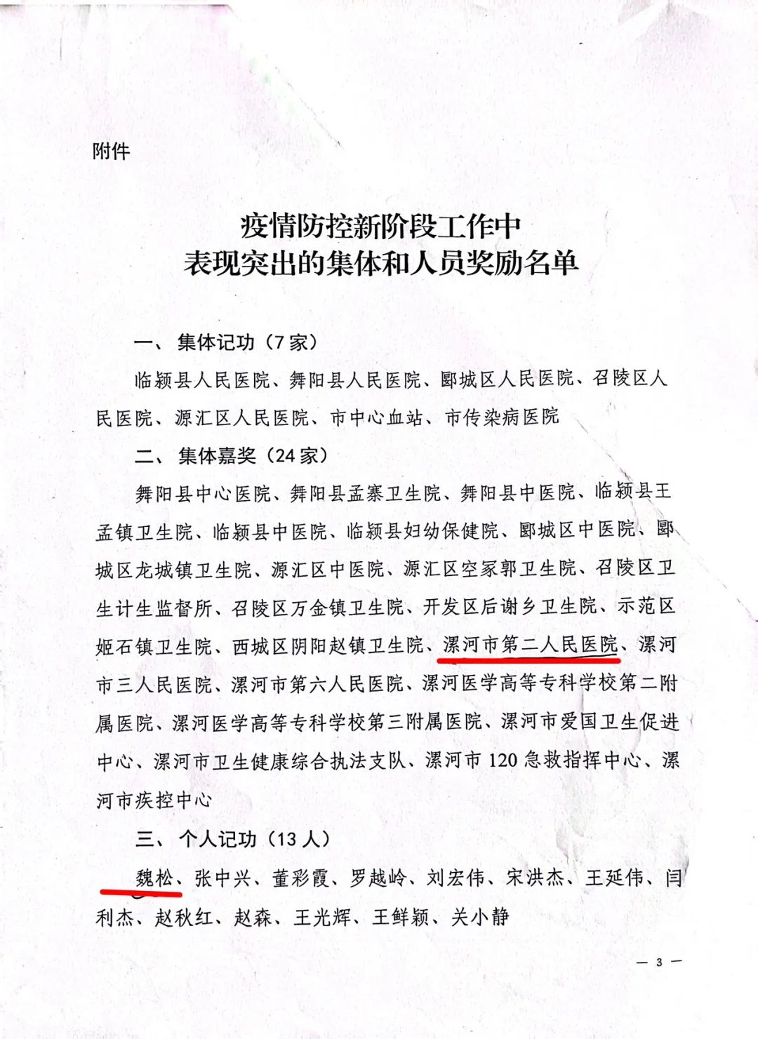 11月15日,漯河市人力資源和社會保障局對疫情防控新階段工作中表現突出的集體和個人進行表彰,市二院榮獲集體嘉獎獎勵。