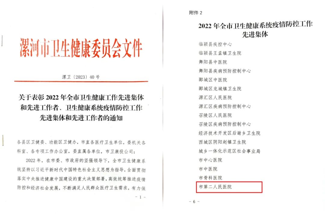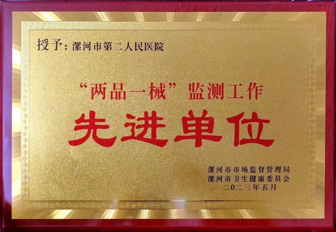 5月25日,市二院分別榮獲河南省2022年度“兩品一械”監測工作先進單位、漯河市2022年度“兩品一械”監測工作先進單位。