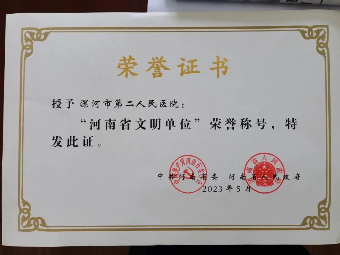 9月,中共河南省委、河南省人民政府發布《關于命名新一屆河南省文明城市文明村鎮文明單位文明家庭的決定》(豫文〔2023〕50號),市二院再次榮獲新一屆“河南省文明單位”榮譽稱號。