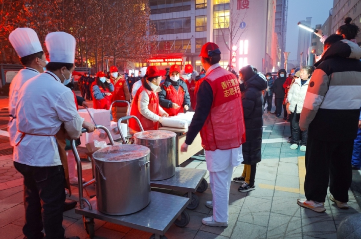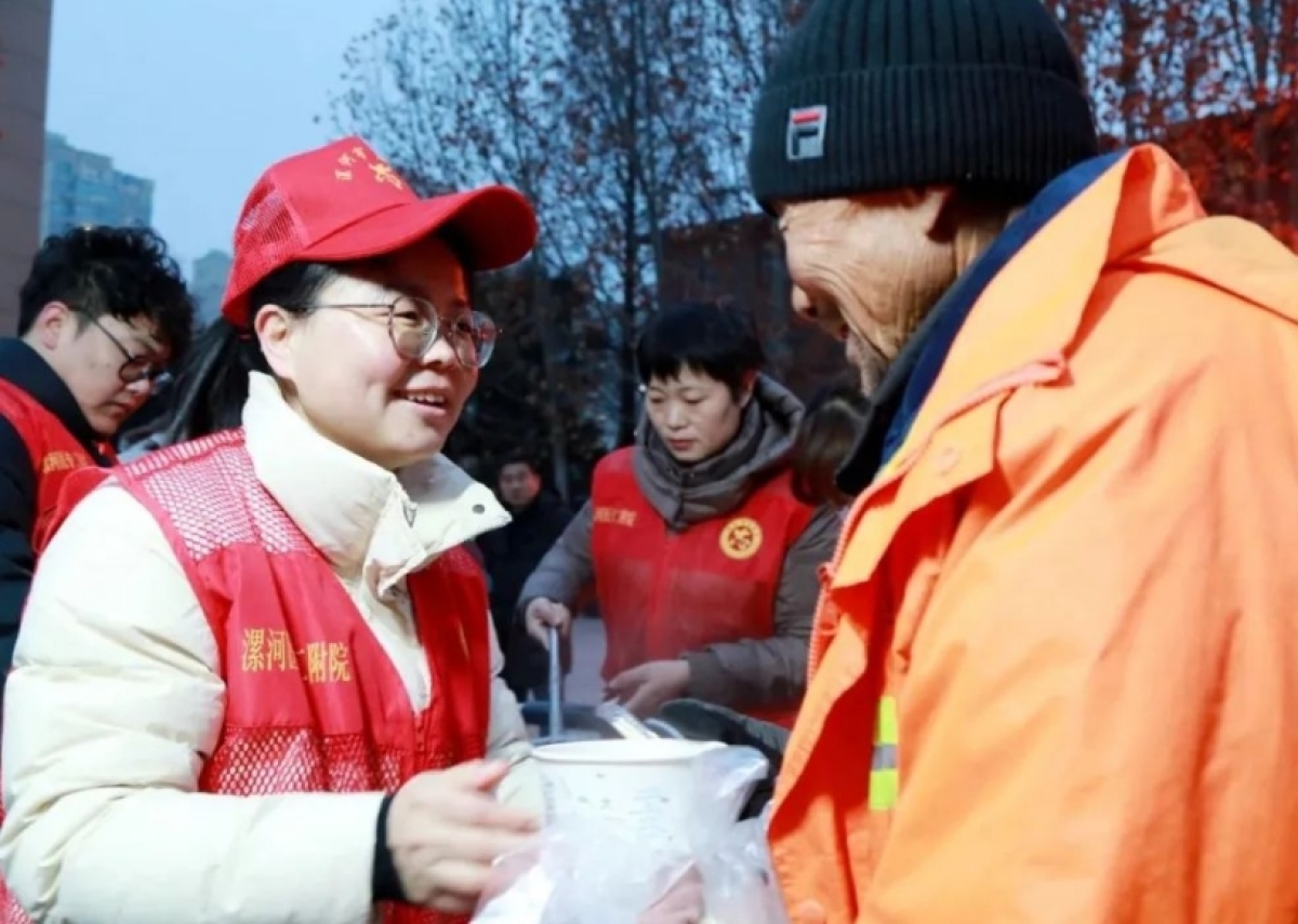 1000余碗臘八粥、600多個包子、10余斤咸菜......被悉數送出,前來領取愛心粥的不僅有患者及家屬,更有附近的環衛工人和群眾。一碗碗愛心粥,不僅是暖手、暖胃,更是暖人、暖心。