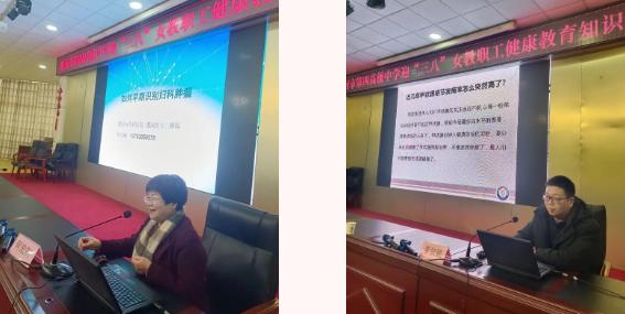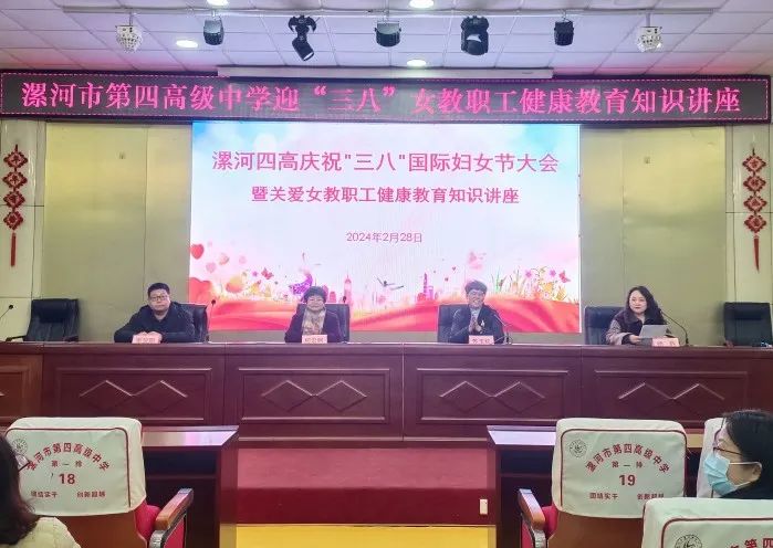 在三八婦女節來臨之際,為關愛女性健康,提高女性自我保健意識,增強疾病的防治能力,普及健康知識,應漯河市第四高級中學領導邀請,2月28日下午,在社會工作部韓書環主任的積極協調組織下,漯河市骨科醫院(漯河醫專二附院、漯河市立醫院)婦產科何宏舸主任、外三科李賀鵬副主任醫師到該校為近200名女教職工進行健康知識講座。