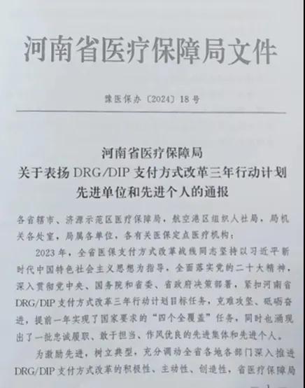 近日,在河南省醫(yī)療保障局公布的《關(guān)于表揚(yáng)DRG/DIP支付方式改革三年行動計劃先進(jìn)單位和先進(jìn)個人的通報》中,漯河市骨科醫(yī)院(漯河醫(yī)專二附院、漯河市立醫(yī)院)被授予河南省DRG/DIP支付方式改革三年行動計劃先進(jìn)單位。