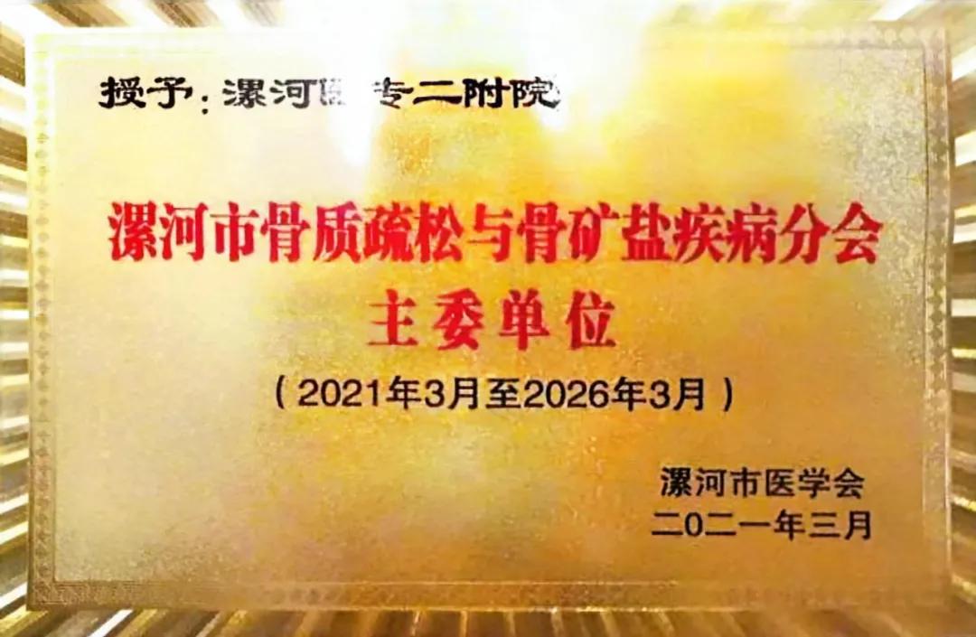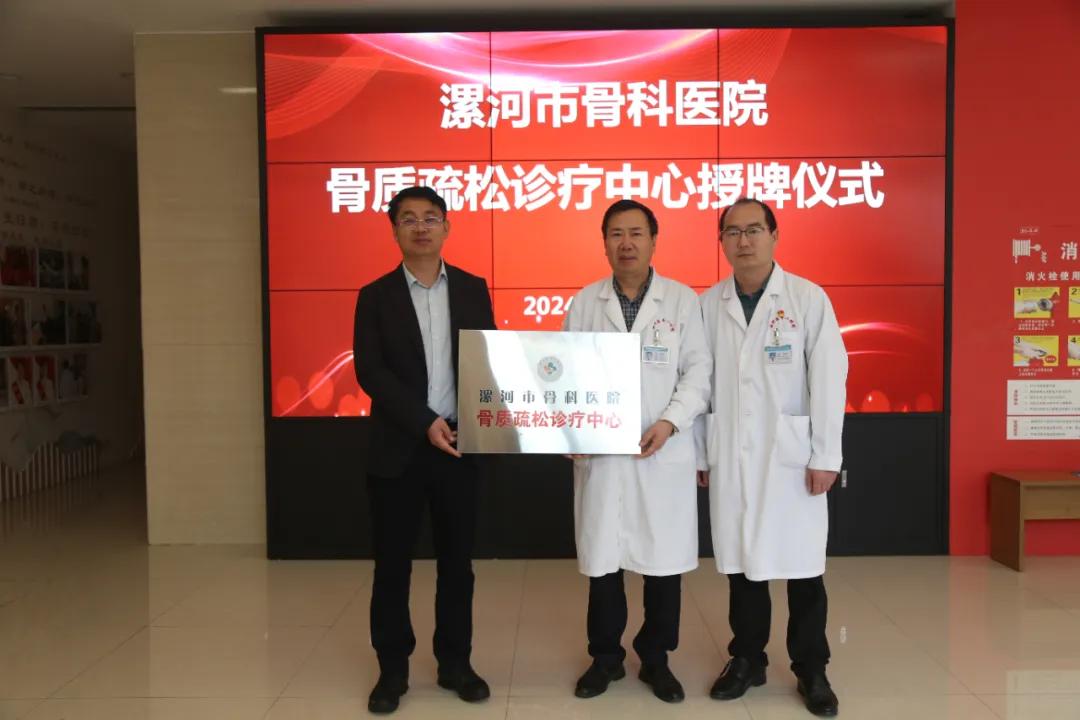 4月15日上午,漯河市骨科醫院(漯河醫專二附院、漯河市立醫院)舉行骨質疏松診療中心授牌儀式。該中心旨在為廣大患者提供更專業、更全面的骨質疏松診斷、治療和預防服務,進一步提高市民對骨質疏松的認識和防治意識。