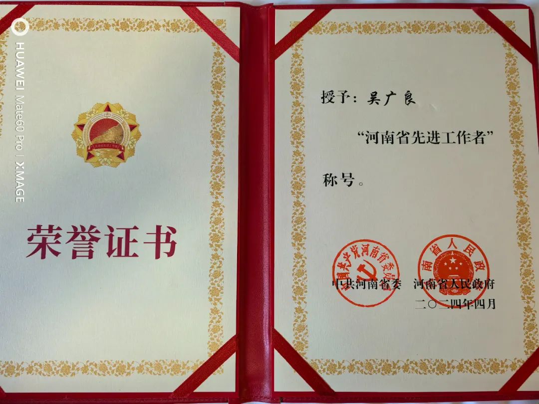 吳廣良自從事醫學臨床和教學工作以來,具有較強的政治覺悟和政治理論水平。始終對自己高標準、嚴要求,努力學習,敬業工作,無私奉獻,在平凡的工作崗位上,干出不平凡的業績,成為人們身邊的學習榜樣。其先后榮獲河南衛生健康工作先進個人、漯河市科技工作先進個人、漯河市第二屆科技帶頭人、第二屆“人民健康衛士”、2018年度漯河市勞動模范、2019年全國改善醫療服務突出貢獻工作者等稱號。