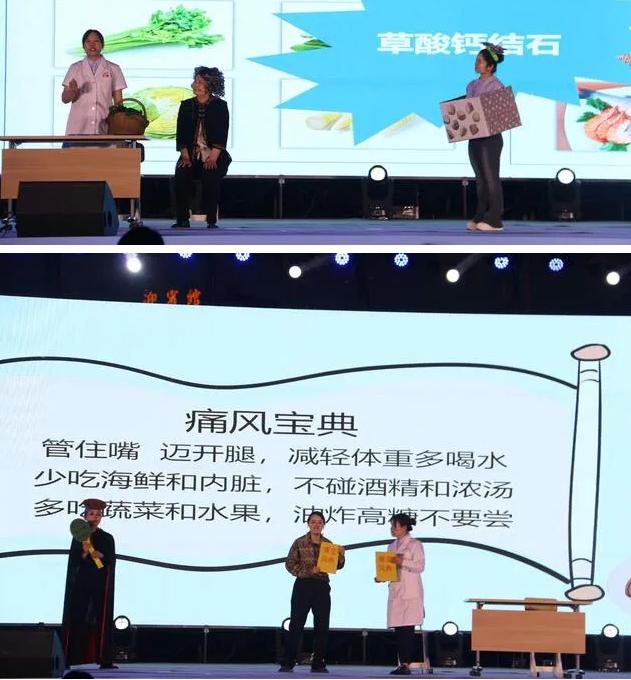 現(xiàn)場(chǎng)醫(yī)護(hù)人員展示的《與“食”俱進(jìn) “石”不再來(lái)》《燃燒我的卡路里》《過(guò)量飲酒 “肝”敗下風(fēng)》《惹不起的痛風(fēng)君》《當(dāng)胸痛來(lái)臨時(shí)》《美麗的陷阱》等作品,形式新穎,采用情景劇、順口溜、快板等生動(dòng)活潑、詼諧有趣的表演方式,圍繞健康生活方式、營(yíng)養(yǎng)健康知識(shí)、慢性病防治等主題,進(jìn)行通俗易懂、生動(dòng)形象地講解,贏得現(xiàn)場(chǎng)評(píng)委和線上線下觀眾一致好評(píng)。
