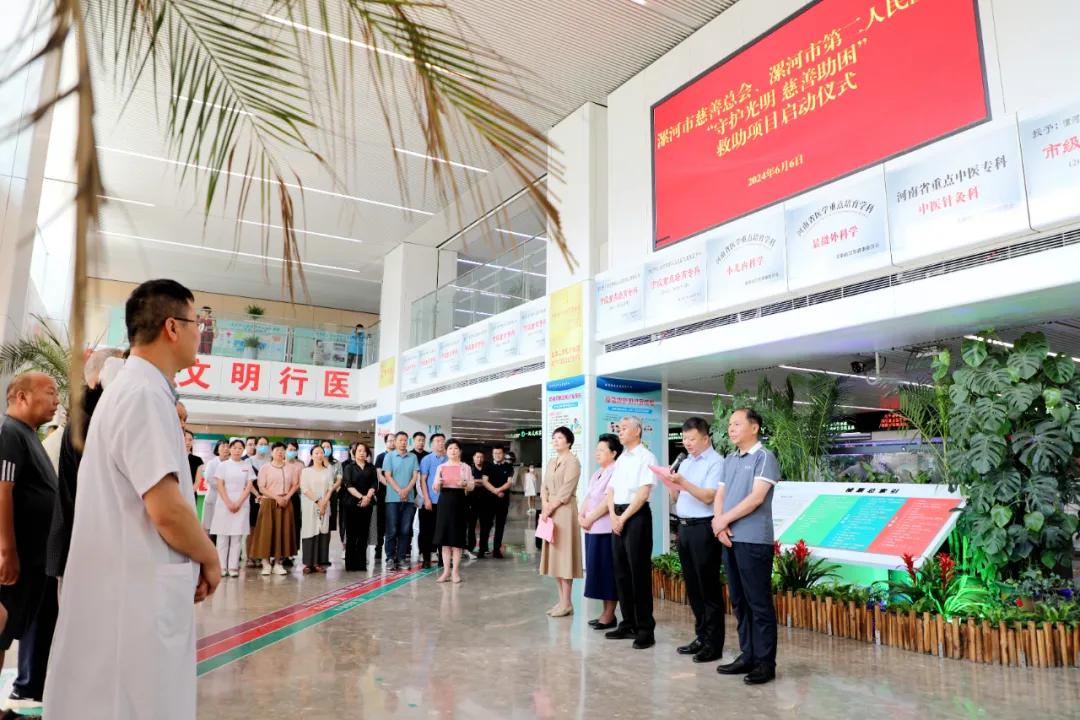 黨委書記魏松致辭并宣布項目啟動,他表示:市二院眼科作為醫院重點發展學科之一,科室團隊能夠熟練開展白內障超聲乳化+人工晶體植入術,近年來已經開展有5000余例,術后效果良好,復明率達99%以上。同時,醫院將此項工程納入年度重點工作予以全力支持,將全力做好項目報名、審核、手術、結算等環節,把此項工程打造成民心工程和示范工程,切實履行社會責任助力現代化漯河三城建設新征程。