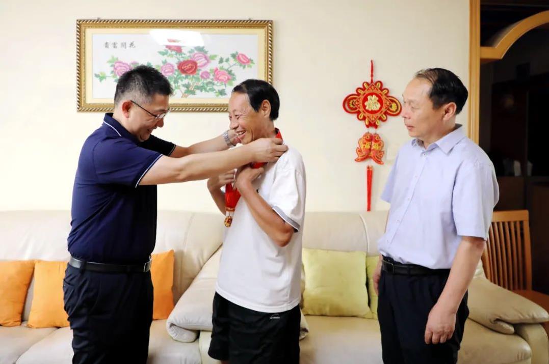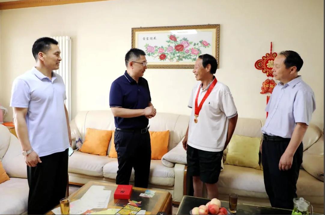 慰問過程中,王向良同志為謝學政同志戴上沉甸甸的紀念章,關切詢問謝學政同志及其家人的生活和身體狀況。孟德陽同志受院黨委的委托,向謝學政同志為醫院的發展所做出的辛勤付出、無私奉獻表達了衷心感謝,叮囑他保重身體,今后有什么困難要及時告知醫院,醫院是他永遠的后盾,并希望他一如既往地關心醫院工作,為醫院高質量發展積極建言獻策。