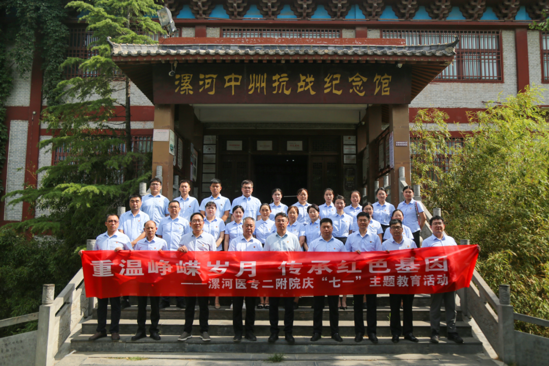 在中國共產黨成立103周年來臨之際,6月26日下午,漯河市骨科醫院(漯河醫專二附院 漯河市立醫院)黨委書記柴運洪、副院長鄭建新帶領廣大黨員干部赴漯河中州抗戰紀念館開展“重溫崢嶸歲月,傳承紅色基因”慶“七一”主題教育活動,近距離了解紅色文化,重溫黨的光輝歷程,感受紅色革命精神的力量。