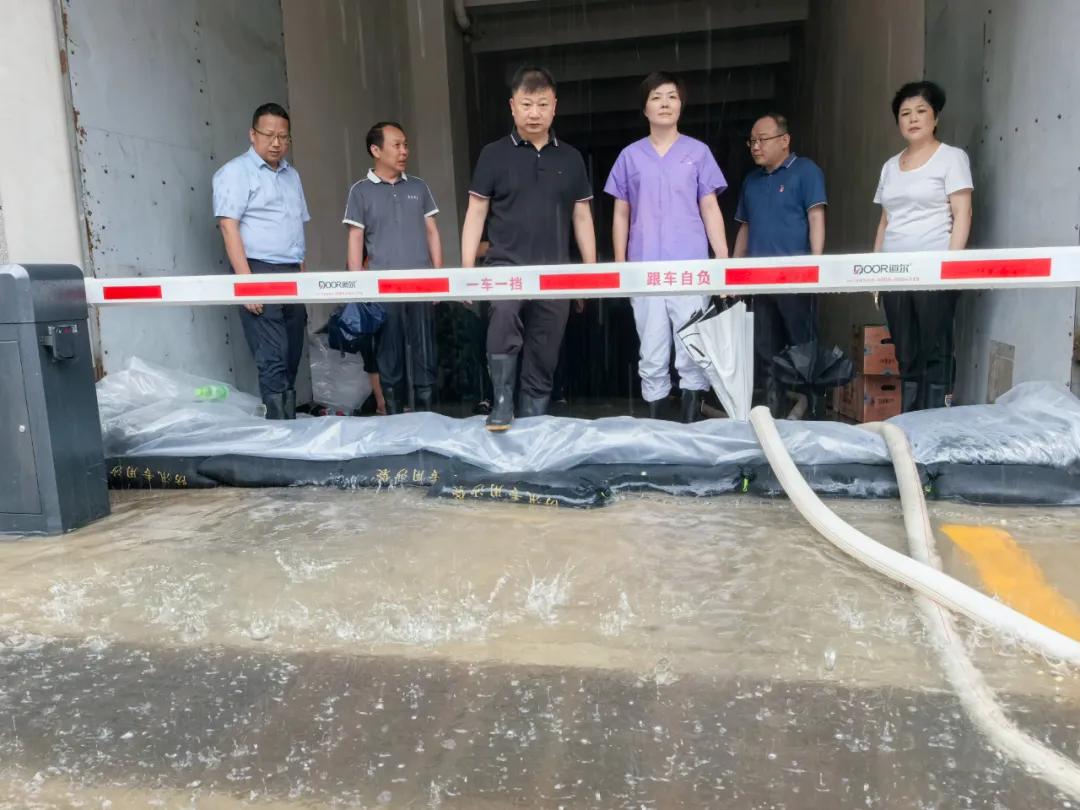 7 月16日,漯河普降暴雨,按照全市統一部署和衛健委要求,市二院立即啟動防汛預案和應急響應機制,黨委書記魏松、院長王瑾靠前指揮,帶領班子成員和相關職能科室人員迅速行動,主動關閉地下車庫布置防水擋板和沙袋,同時加固配電房防水沙袋墻,重點點位人員全部上崗包點駐守,確保能夠第一時間發現問題及時響應堵漏補缺,全力保障醫院安全穩定運行。