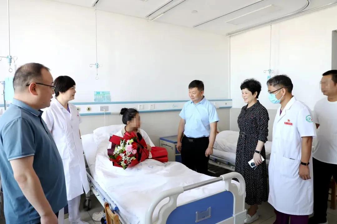 當天上午,市二院黨委書記魏松、院長王瑾、副院長張曉東、副院長劉橋及相關人員到心血管內科看望患兒及家屬。院領導詳細了解涵涵的恢復狀況,并對她能夠順利康復、即將重返正常生活與學習由衷的祝賀與美好的祝愿。