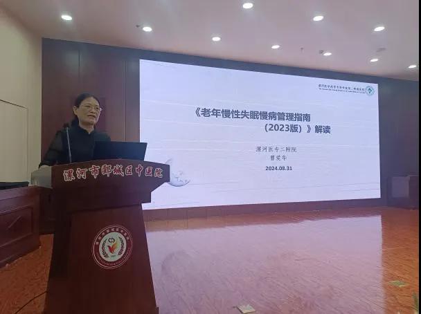 培訓中,曹愛華以《老年慢性失眠慢病管理指南解讀2023》為主題,分別從指南制定背景與目的、睡眠的作用、控制睡眠的解剖結構及生理基礎、老年慢性失眠的診斷、治療到未來發展趨勢預測及應對建議進行一一闡述。