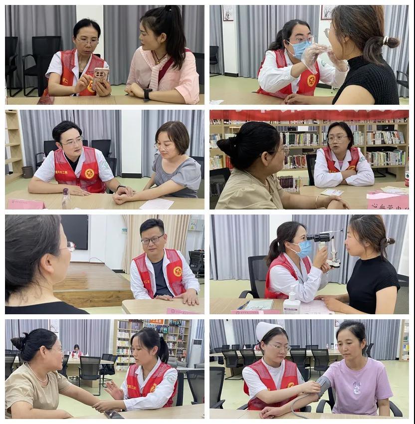 現場,來自市二院心血管內科、婦科、骨科、中醫針灸科、皮膚科、眼科、口腔科、心電圖、超聲等10余名專家、志愿者,為教師們進行面對面健康指導,提供測血壓、血糖、耳穴壓豆、心電圖、彩超等檢查項目,根據教師們的具體情況給出個性化的診斷和治療建議。針對教師群體常見的頸椎、腰椎等方面的職業病,中醫針灸科、骨科專家現場進行康復指導,演示簡單有效的康復動作和保健方法。