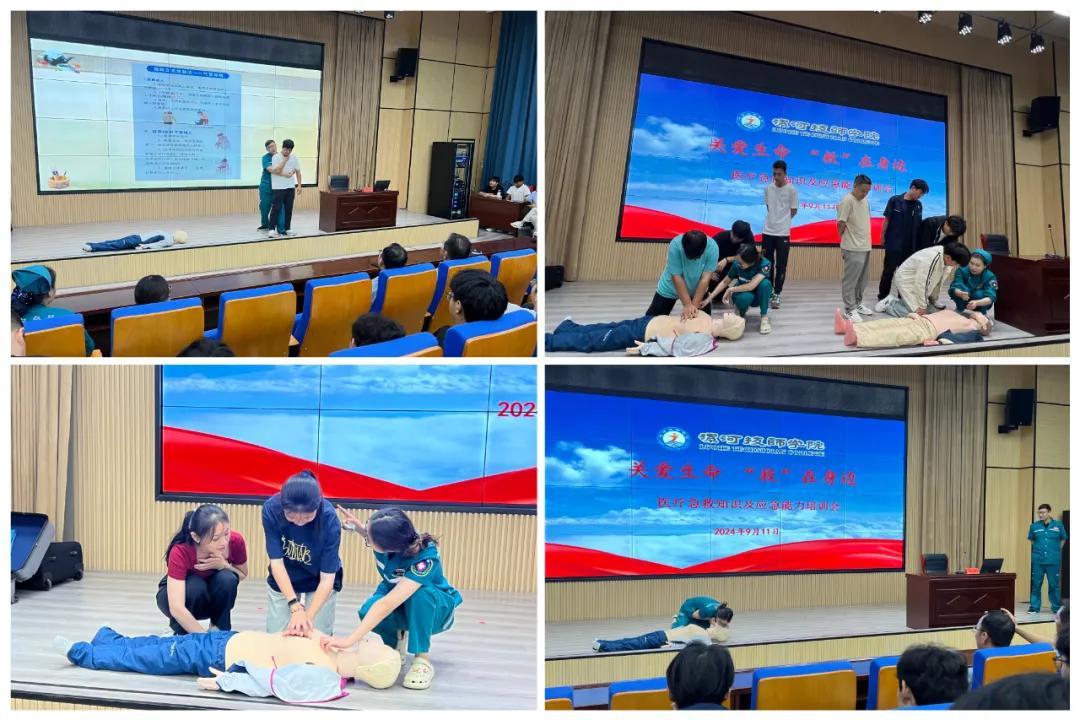人人學急救,急救為人人,9月11日,漯河市中醫院醫聯體辦公室組織該院急診科醫護團隊到漯河市技師學院開展急救知識“六進”之進校園活動,為二百余名學生干部進行了心肺復蘇、海姆立克等急救知識宣講和現場演示。