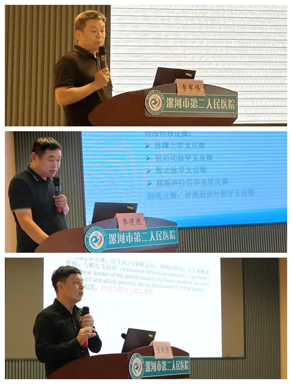 在學術交流環節,河南省人民醫院手足顯微和創面修復外科主任謝振軍教授就“慢性創面的皮瓣修復”,市骨科醫院骨四科主任李俊明就“穿支皮瓣聯合Masquelet技術治療四肢骨及皮膚軟組織缺損”,市二院顯微外科主任沈衛軍就“幾種常見的肌腱自發性離斷”,市中心醫院創傷骨科主任李軍偉就“超顯微技術在阿爾茨海默病中的應用進展”,市骨科醫院骨四科副主任醫師李道選就“游離股前外側穿支皮瓣修復足踝部皮膚缺損”,市二院顯微外科副主任醫師王戰磊就“手部側副韌帶損傷的診療方法”做了專題講座及分享交流。