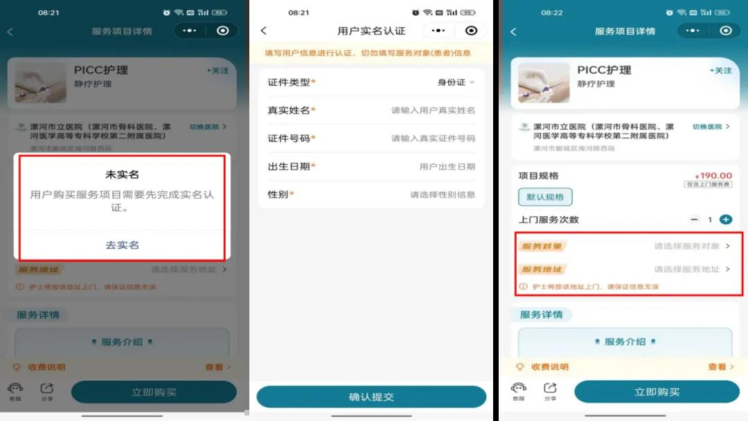 3.購買之后需實(shí)名認(rèn)證,請(qǐng)正確填寫各項(xiàng)信息,服務(wù)對(duì)象填寫的是需要被護(hù)理的患者,地址填寫準(zhǔn)確。