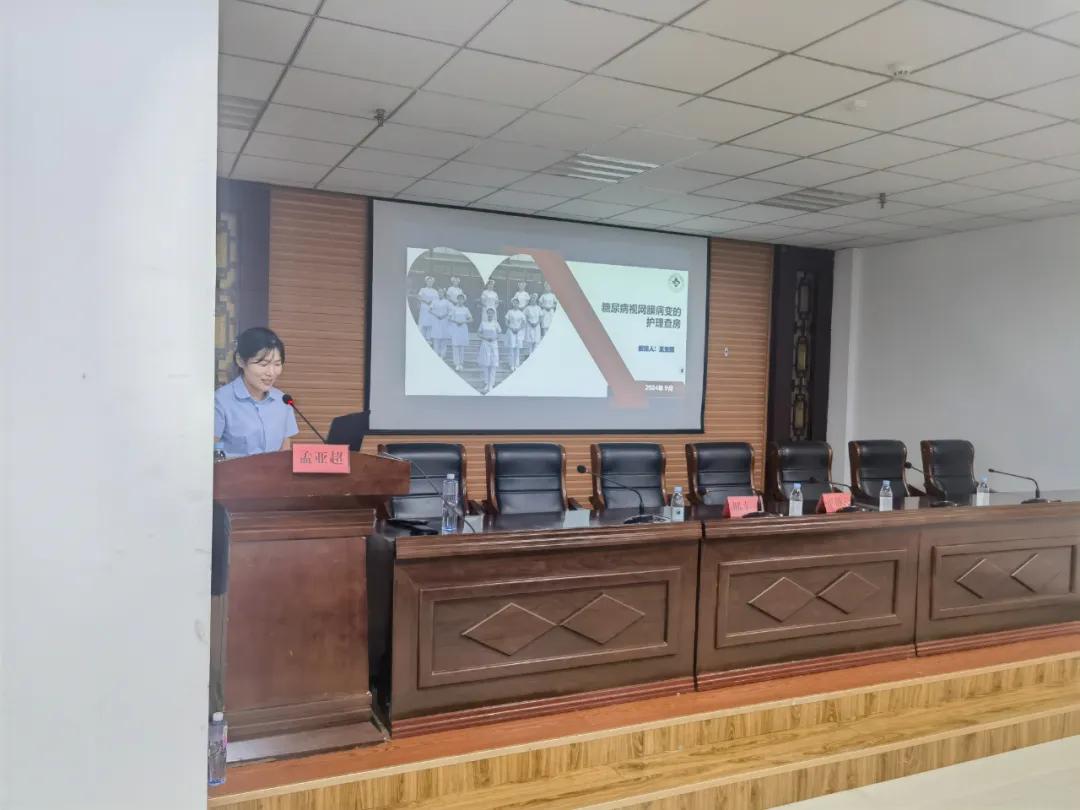講座中,主管護師孟亞超通過一例糖尿病視網膜病變患者的實例,巧妙引出講座主題《糖尿病視網膜病變患者的術后護理查房》。她詳細介紹了護理查房的內容、規范化流程以及如何去分析查房的重點問題和有效的實施相關護理措施。