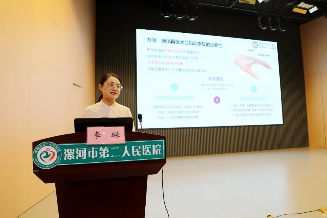 學術交流會上,市中心醫(yī)院創(chuàng)傷骨科外科護理規(guī)培基地秘書李琳講解了《全程康復護理管理模式在斷指再植患者術后功能恢復中的應用》,分享醫(yī)院的全程康復護理管理模式,實現(xiàn)了從術前準備到長期隨訪的全程管理,提高了康復治療的標準性和個體化水平。