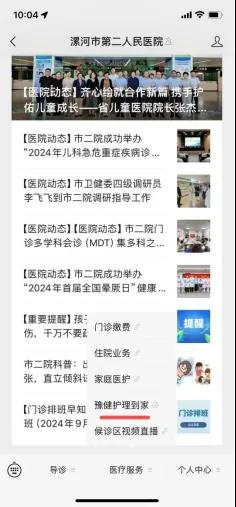 2.可以關注漯河市第二人民醫院微信公眾號,進入公眾號頁面。