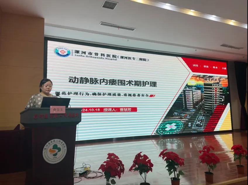 精心的圍手術期護理,可以減少手術并發癥,提高手術成功率,曹慧芳主任以《動靜脈內瘺圍術期護理》為題詳細闡述了患者評估與準備、手術過程與護理配合、術后護理與觀察、藥物治療與護理、心理護理等內容。