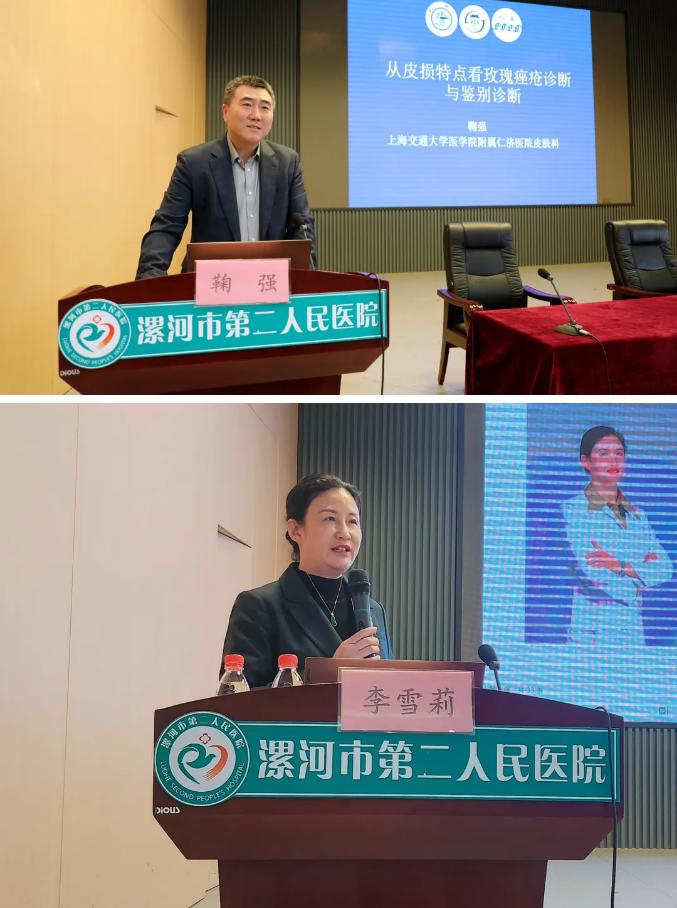 會議特邀上海交通大學醫學院附屬仁濟醫院皮膚科主任鞠強教授、鄭州大學第一附屬醫院皮膚科主任尹光文教授、河南省人民醫院皮膚科主任李雪莉教授蒞臨授課。市二院黨委書記魏松、副院長張曉東和全市及周邊相關專業醫務人員200余人參會。會議由副院長張曉東主持。