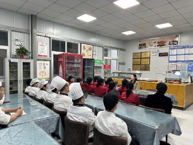 本次培訓會特邀請漯河市疾病預防控制中心食品科的吳可月醫師為餐廳工作人員講授膳食指南相關知識。醫院臨床營養科主任齊彤主持培訓會。
