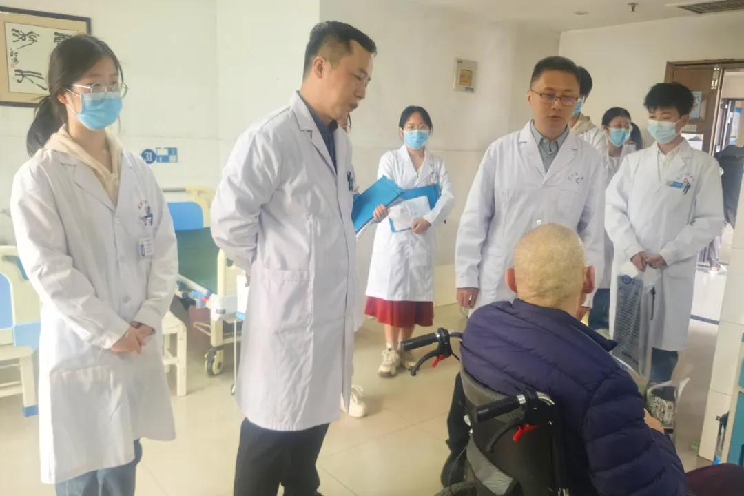 在業(yè)務(wù)查房中,胡彥輝教授通過查閱病歷資料、查體、詢問病史、輔檢報(bào)告等,為主管醫(yī)生講解了其對一些疑難病的診療思路、病情觀察與治療要點(diǎn),并指導(dǎo)制定了疑難病患的診療方案。