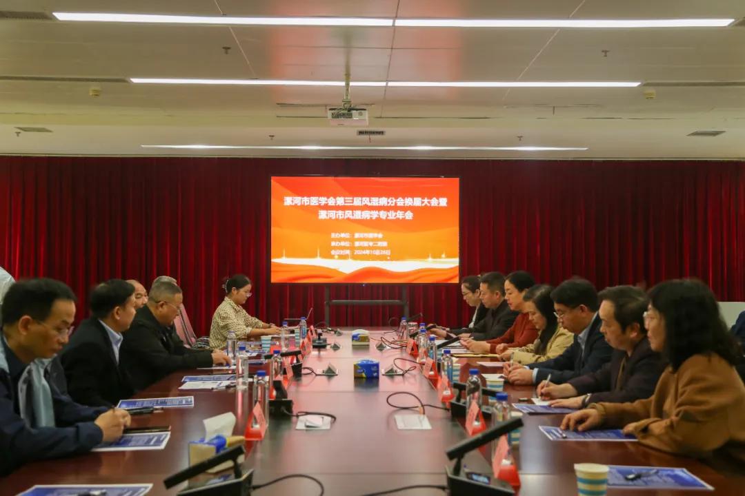 為搭建風濕病學術交流平臺,提升風濕病診治水平,更好地保障人民群眾健康,10月26日,由漯河市醫學會主辦、漯河市骨科醫院(漯河醫專二附院、漯河市立醫院)承辦的漯河市第三屆風濕病學專業委員會換屆暨2024年漯河市風濕病學專業年會召開。漯河市衛健委三級調研員王新慧、市醫學會花云秘書長、漯河市骨科醫院黨委書記柴運洪、紀委書記劉國鋒等出席。會上,我院劉國鋒當選為主任委員,李變鋒當選為副主任委員,程苗當選為常務委員兼學會秘書。會上頒發了委員證,全體委員合影留念。