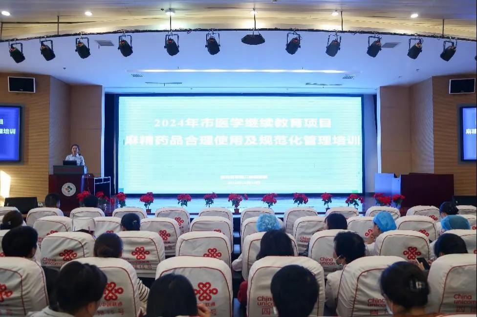 為加強麻醉藥品和精神藥品的管理,促進麻醉藥品和精神藥品的合法、安全、合理使用,保障醫療質量和醫療安全,10月24日,漯河市骨科醫院(漯河醫專二附院)在門診樓501會議室舉辦2024年漯河市繼續醫學教育項目“麻醉藥品和精神藥品合理使用和規范化管理”培訓班,全市各級醫療機構醫務人員百余人參加此次培訓。會議由藥學部陳曉宇藥師主持。
