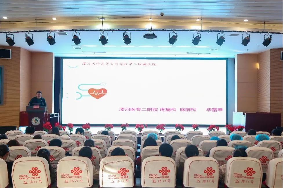 麻醉科主任畢路甲的授課題目是《疼痛的規范化藥物治療》,從疼痛的治療原則、方法以及常用藥物的適應癥、注意事項和禁忌癥等方面進行分享。同時,也指出了臨床使用中的常見誤區,不提倡將哌替啶用于癌癥鎮痛治療等。提高了醫護人員對疼痛治療的認識和臨床應用能力。