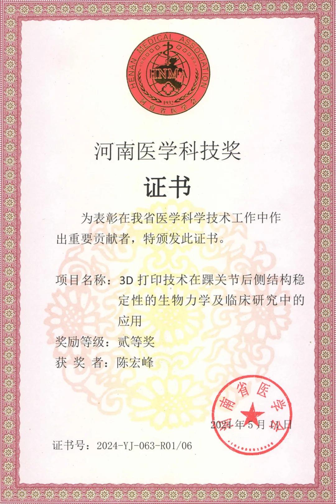 在陳宏峰主任帶領下,2012年起,在豫中南地區率先開展踇外翻、平足癥、高弓足畸形的規范化矯治。2012年完成豫中南第一例自體韌帶重建治療踝關節外側韌帶陳舊性損傷,2019年完成豫中南第一例踝上截骨術(SMO)治療踝關節骨性關節炎,2020年完成豫中南第一例軟骨移植術(AOT)治療距骨軟骨損傷。2021年完成豫中南第一例人工全踝關節置換術治療終末期踝關節骨性關節炎,2024年開展人工跖趾關節置換治療踇外翻、類風濕關節炎足,相繼開展了脛骨橫向骨搬運術治療糖尿病足,應用骨科手術機器人結合髓內釘微創治療踝關節骨折、跟骨骨折,踝關節鏡下微創修復踝關節外側韌帶損傷等領先技術,在豫中南地區享有盛譽。