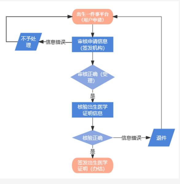 《出生醫(yī)學(xué)證明》申請及簽發(fā)流程圖