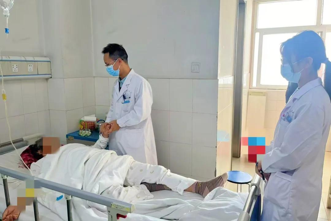 圖片術后孫亞中醫生為患者診脈并查看腿部血運情況