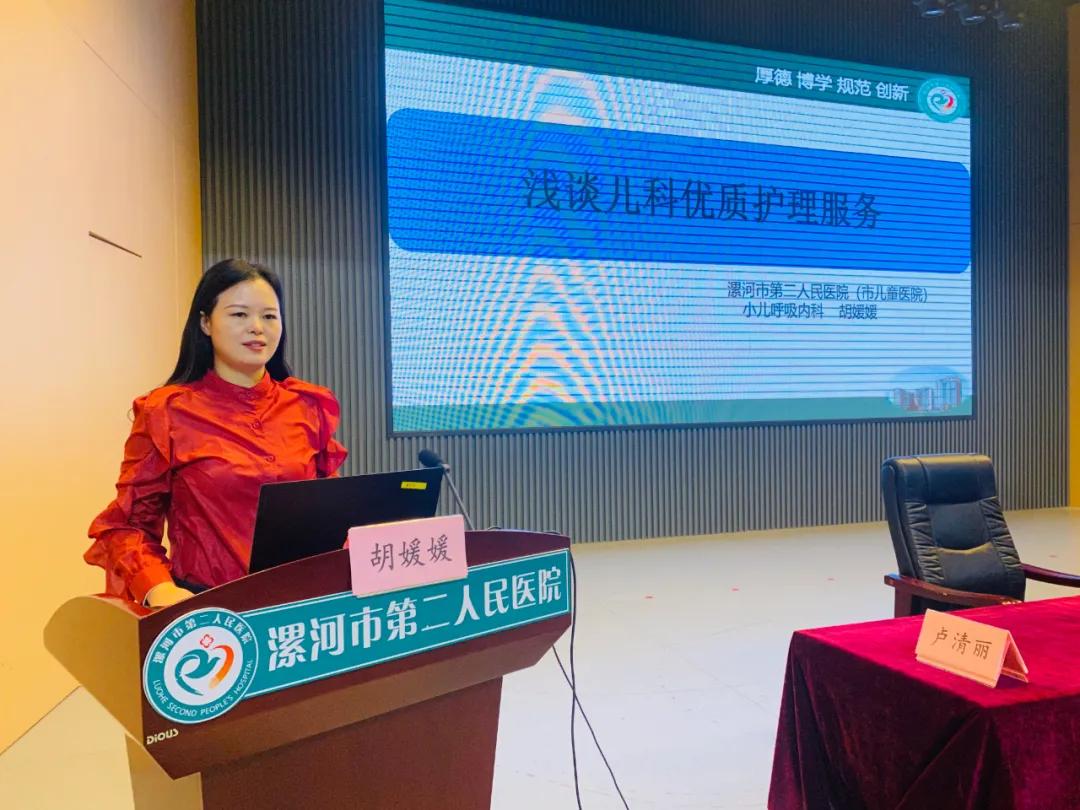 市二院小兒呼吸內科護士長胡媛媛分享了《淺談兒科護理優質護理服務》,通過實施優質護理服務鏈、科普在線等形式,將優質護理服務融入日常護理工作中。