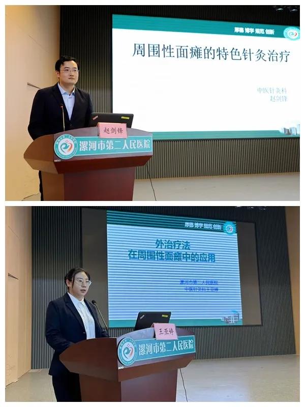 市二院中醫(yī)針灸科趙劍鋒醫(yī)師、王亞婷醫(yī)師分別分享了《周圍性面癱的特色針灸治療》《外治療法在周圍性面癱中的應(yīng)用》,詳細(xì)介紹了周圍性面癱的外治療法。