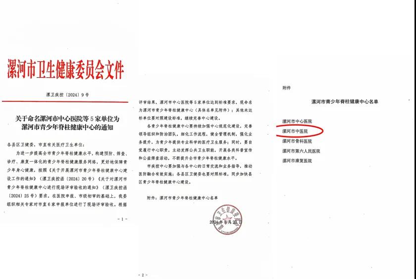 (漯河市中醫院獲批“漯河市青少年脊柱健康中心”)