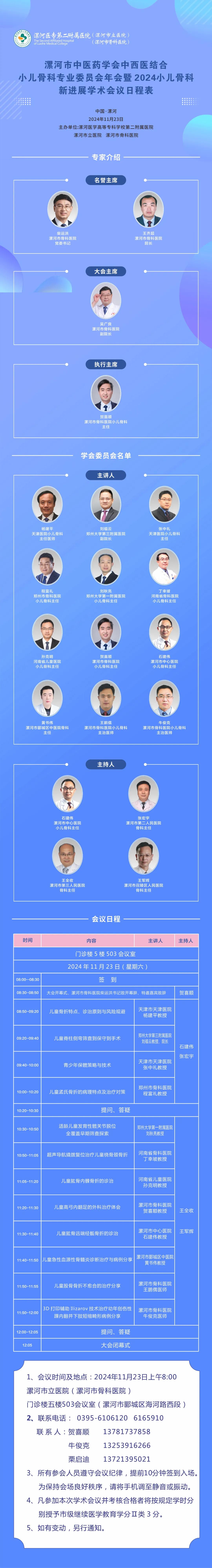 11月23日 漯河市中醫(yī)藥學會中西醫(yī)結(jié)合小兒骨科專業(yè)委員會年會暨2024小兒骨科新進展學術(shù)會議