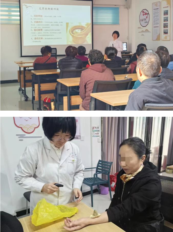 在源匯區建西社區,針灸科護士長張瑞講解了艾灸的原理、功效、適用人群以及注意事項。通過生動的圖片和視頻展示,讓社區居民對艾灸養生方法有了更直觀的認識。課后張瑞護士長為大家現場演示艾灸的操作,細心地幫助大家找準穴位。互動問答環節氣氛熱烈,居民們紛紛提出養生過程中遇到的問題,張瑞護士長耐心解答,提供了專業的建議和指導。