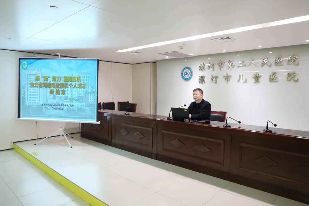 黨委書記魏松以《凝“新”聚力 “醫”路啟航 奮力譜寫醫院發展和個人成才新篇章》為題,從醫院的發展歷程、學科建設以及未來期望等方面為新入職人員上了精彩的第一課。