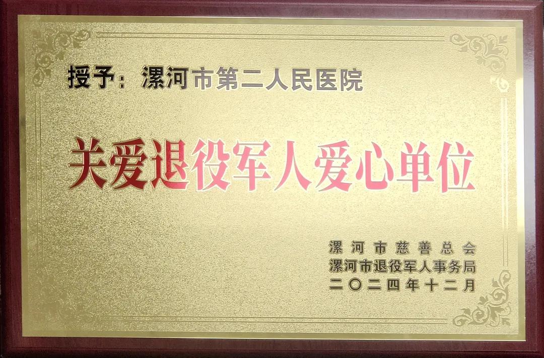 12月12日,在漯河市關愛退役軍人和其他優撫對象基金設立暨幫扶救助活動啟動儀式上,市二院被漯河市慈善總會、漯河市退役軍人事務局授予“關愛退役軍人愛心單位”榮譽稱號。市二院紀委書記孟德陽作為愛心單位代表進行了典型發言。