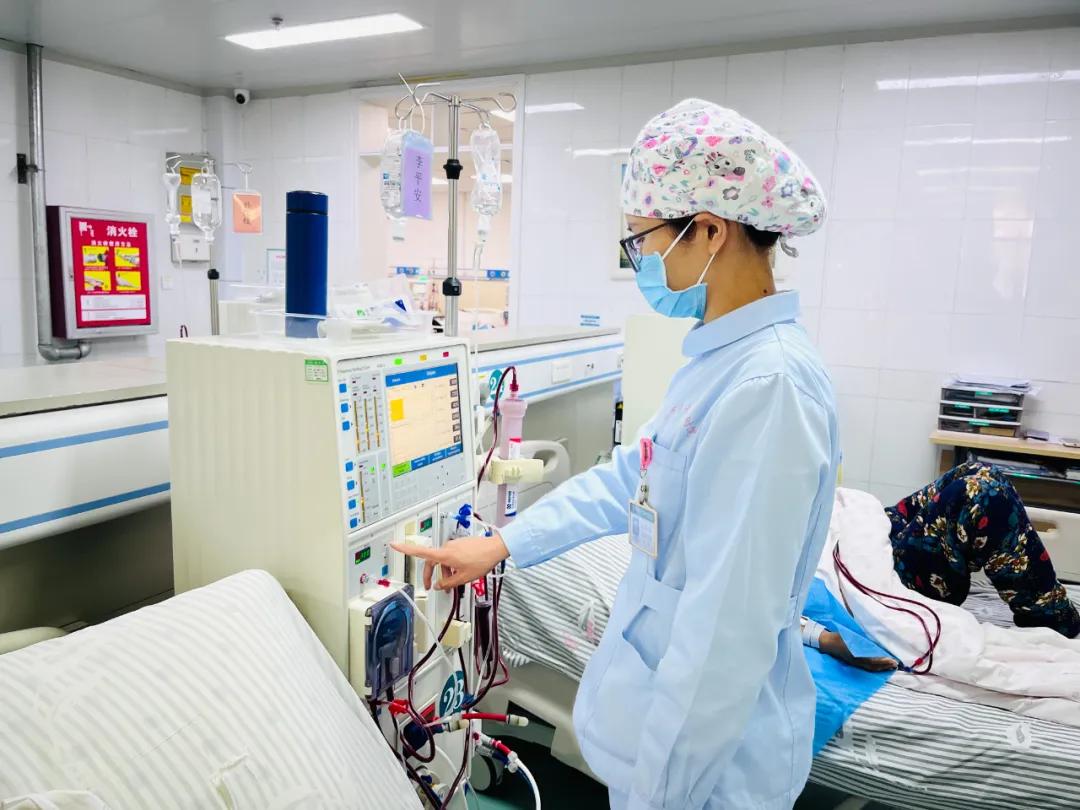 血液凈化室是一個安靜的地方。透析機發出的“嘀嗒”聲和患者的呼吸聲成為這里獨特的旋律。每天早上7點,我會準時到崗,檢查機器、配制抗凝劑等,做好患者上機前的準備工作;透析過程中,認真監測患者生命體征……對每一個步驟都嚴謹細致。在這個沒有硝煙的戰場上,我時刻保持警惕,為患者健康盡心盡力。